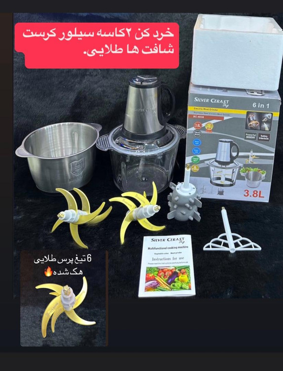 خردکن دو کاسه سیلورکرست ۱۲ تیغه طلایی حک شده شفت طلایی مدلSC_4030