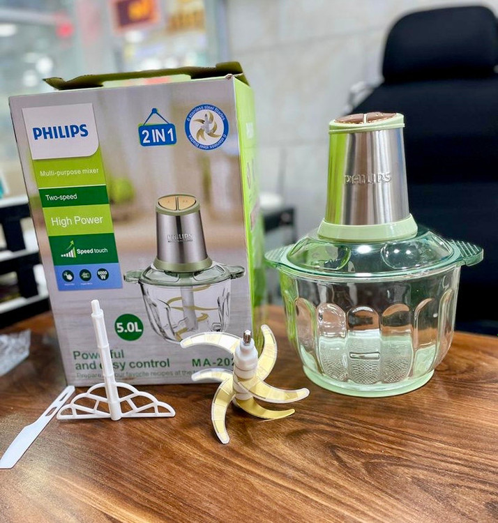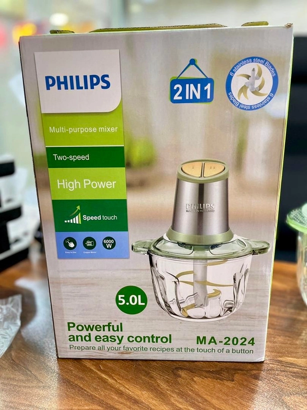 خردکن 5 لیتری فیلیپس_6 تیغه تیتانیوم طلایی همراه با همزن و کاردک_قدرت 6000 وات_مدلMA2024