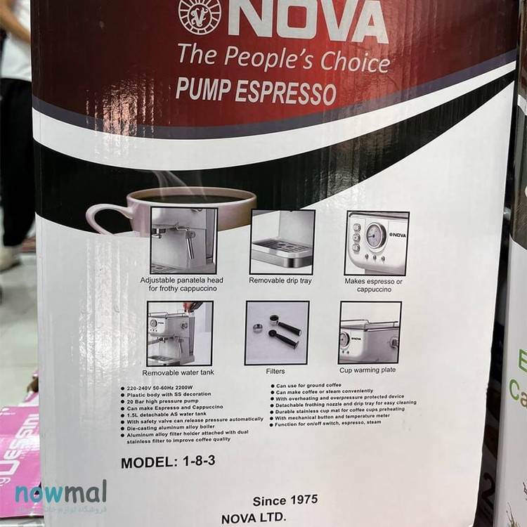 ویژگی ها: چراع نشانگر, خاموشی خودکار, سینی چکه گیر, فشارسج, قطع کن خودکار, نازل آب جوش, نازل بخار