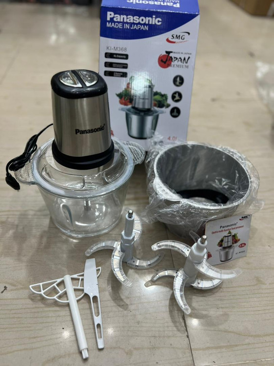 خردکن دو کاسه ۴ لیتر پاناسونیک- ۶+۴ تیغه استیل همراه با همزن وکاردک-قدرت ۳۸۰۰ وات مدل KI-M368