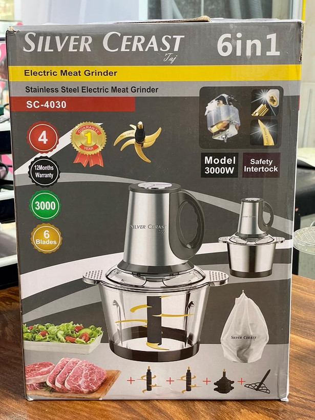 خردکن دو کاسه۴ لیتر لیتر سیلورکرست - 6+6 تیغه طلایی همراه با سیرپوست کن و همزن