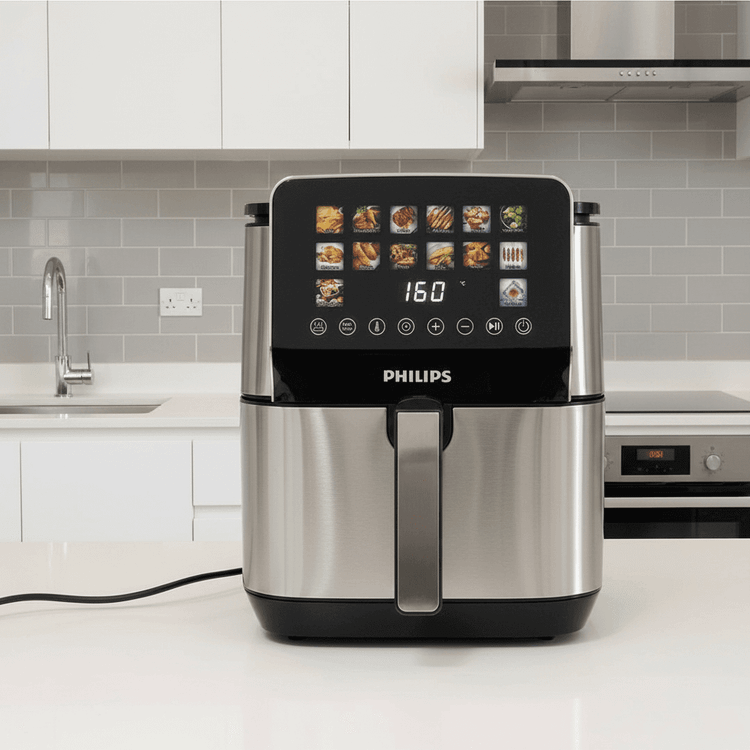 سرخکن دوالمنت ۱۴ لیتر فیلیپس- تمام استیل سبددار- قدرت ۳۲۰۰ وات مدل HD-9880